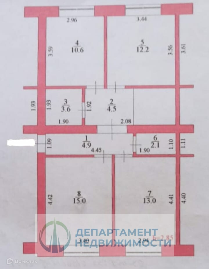 Высота потолков 2.8 м