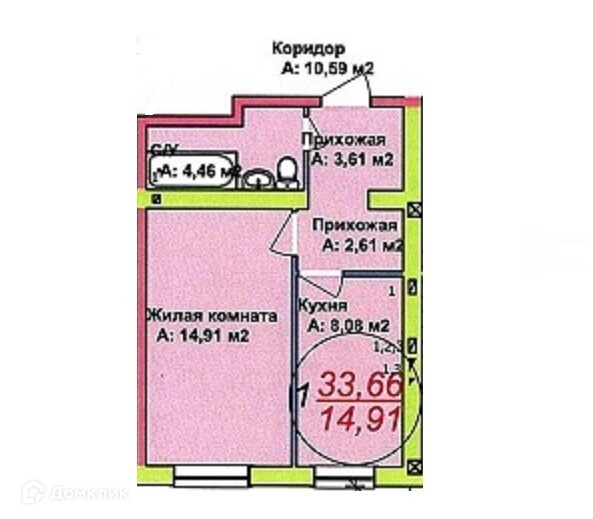 Общая площадь 32.5 м2