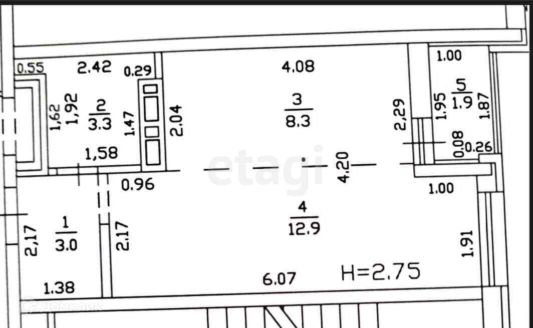 Общая площадь 27.5 м2
