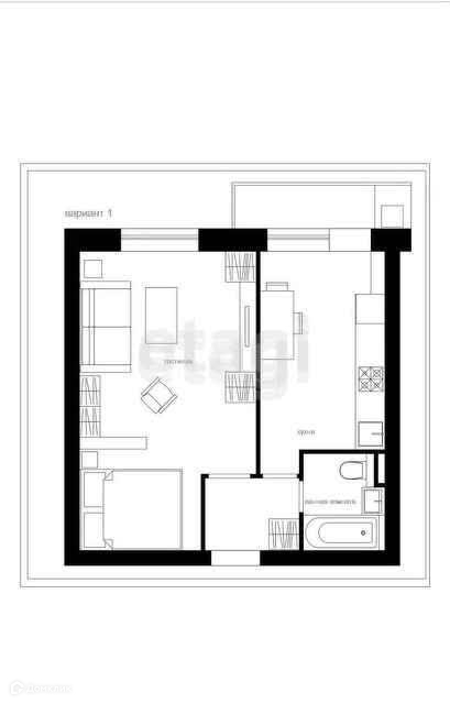 Балкон, лоджия 1 балкон