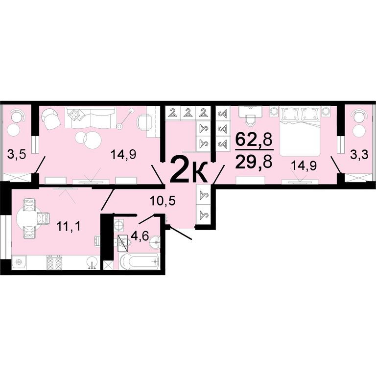 Жилая площадь 30 м2