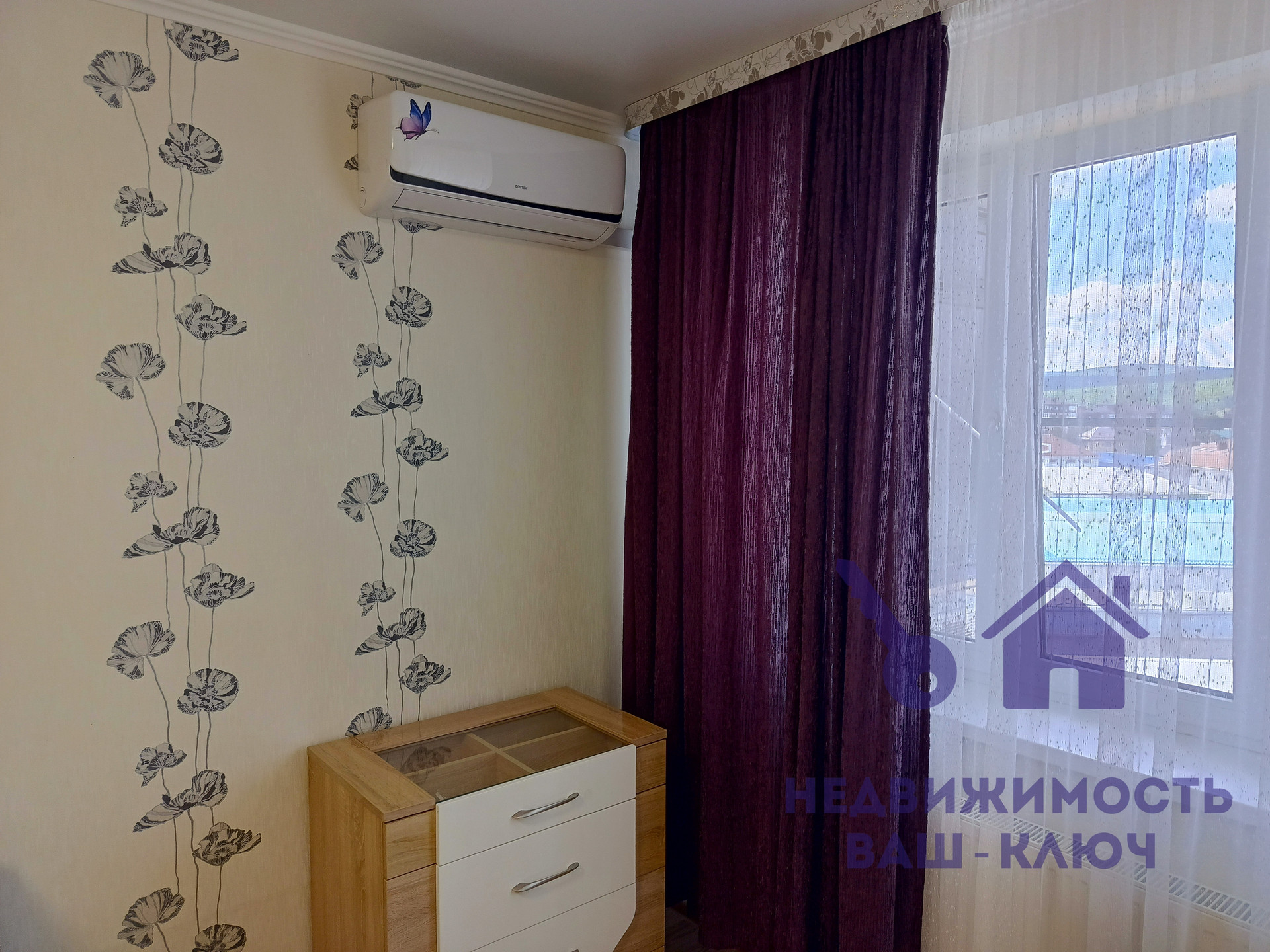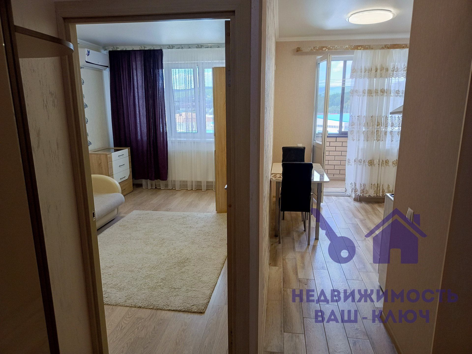 Светлая просторная однокомнатная квартира расположена на комфортном 5 этаже с видом на горы.
