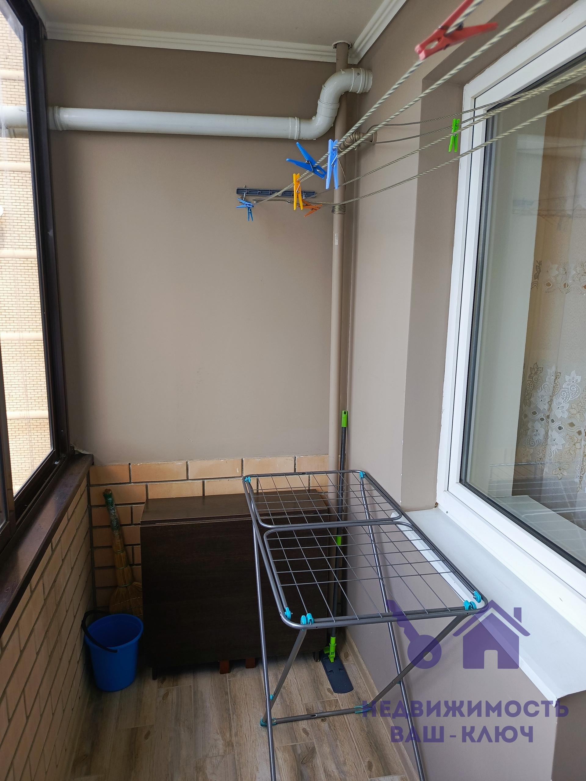 Удобная широкая застеклённая лоджия.