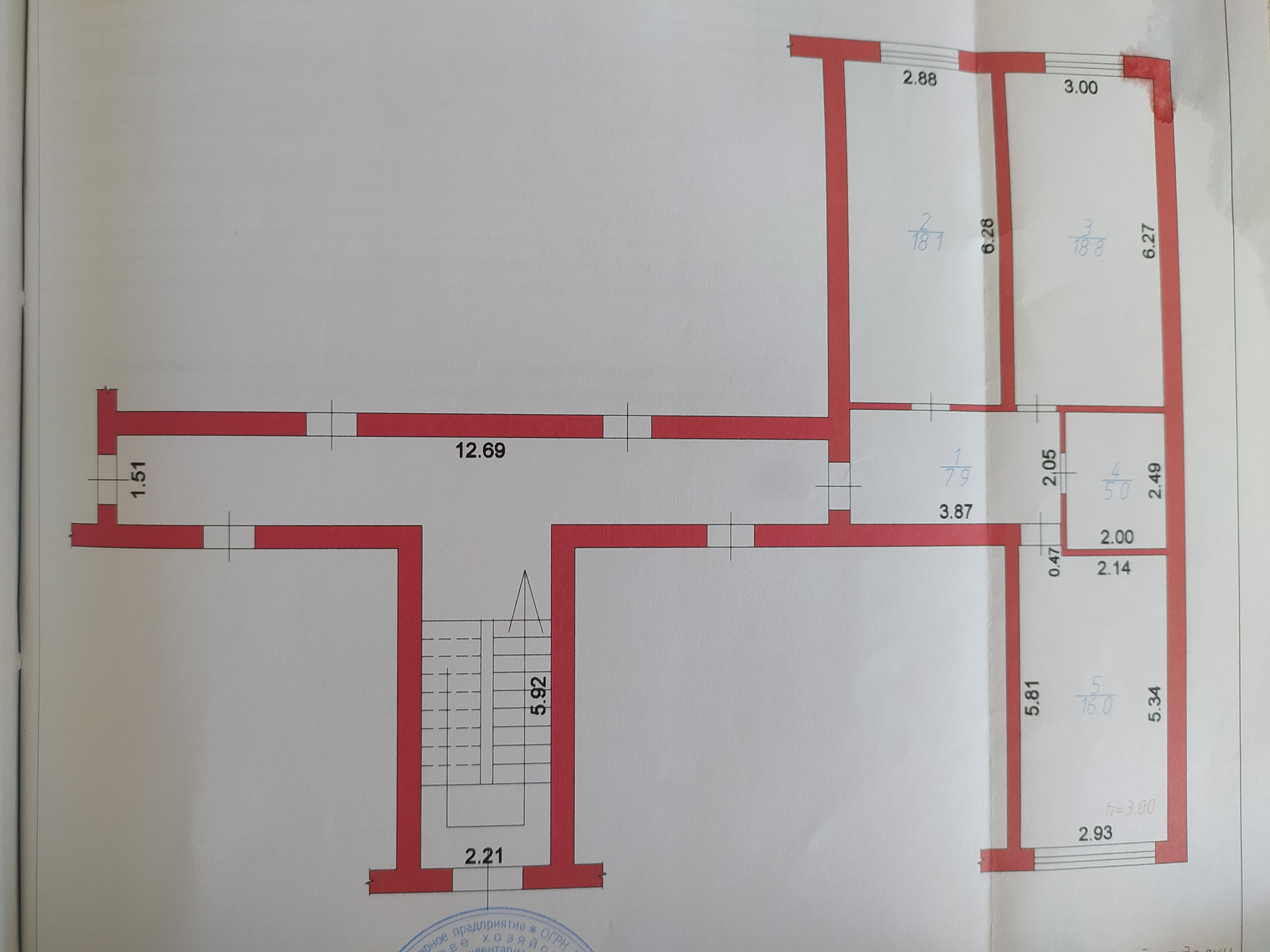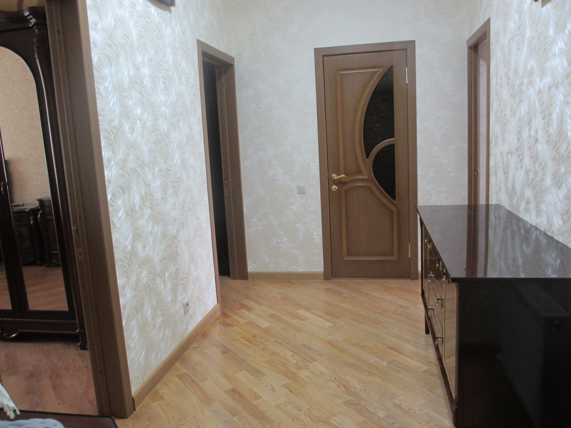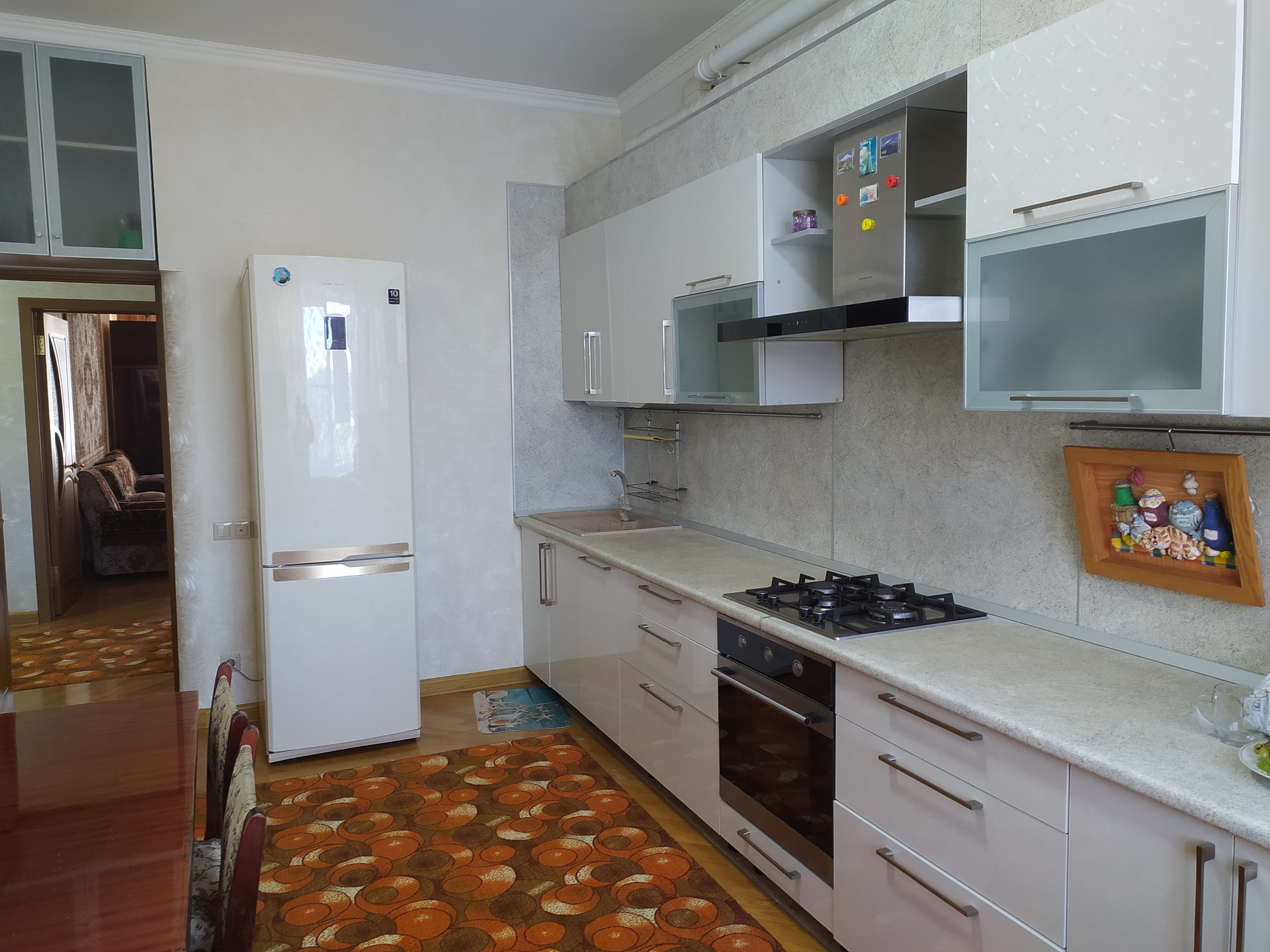 Жилая площадь - 36.9 кв. м., высота потолка - 3 м., просторная кухня – 16 кв. м., санузел - 5 кв. м. совмещенный, потолок - оштукатуренный, пол - паркет из ясеня.