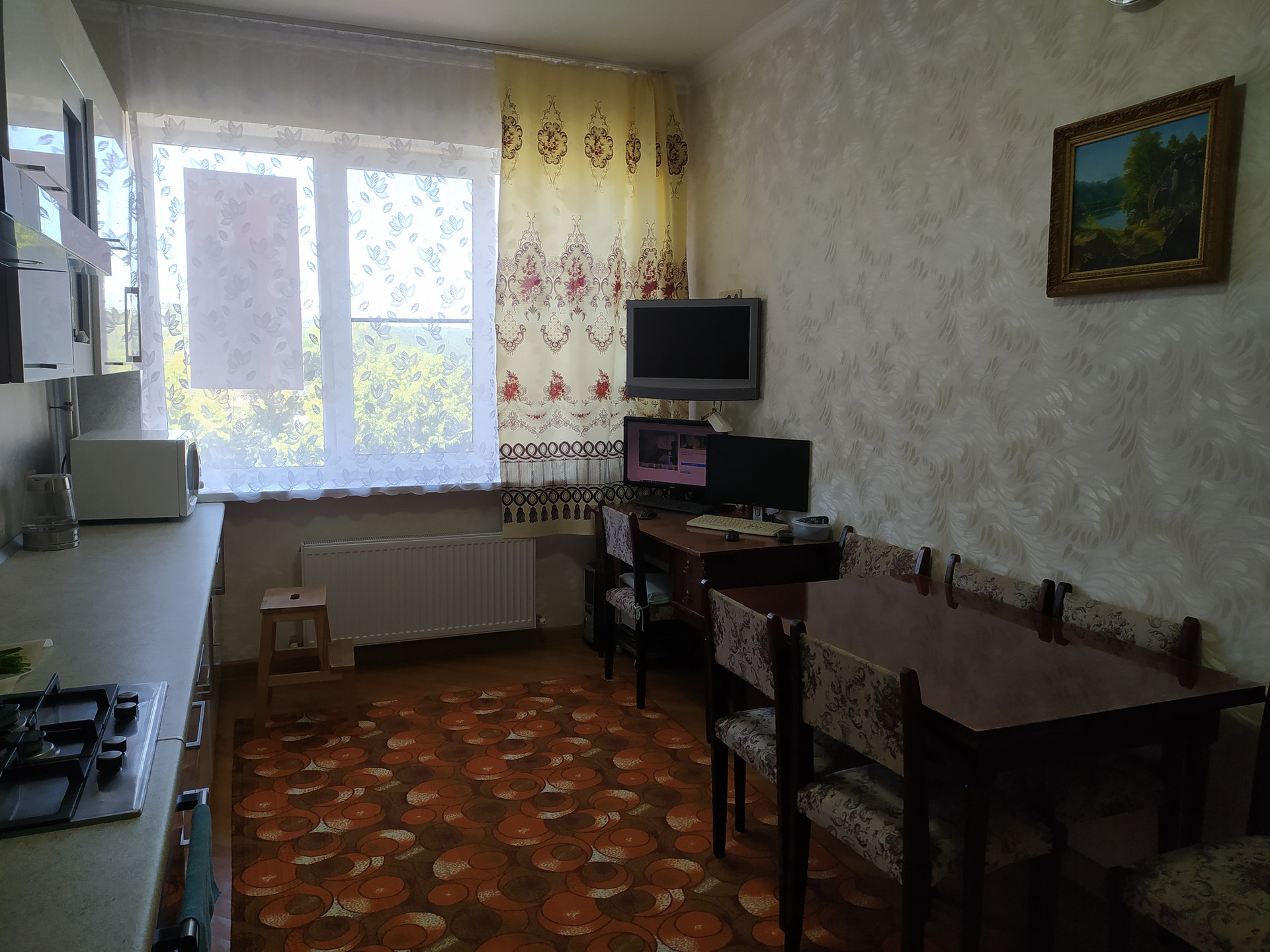 Одним из преимуществ квартиры являются виды из окон на парк, двор, улицу, лес и горы, что позволяет наслаждаться живописными видами при пассивном отдыхе в квартире, а также дышать горным, лесным, целебным воздухом.
