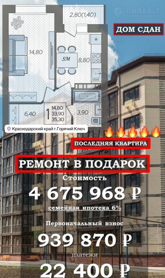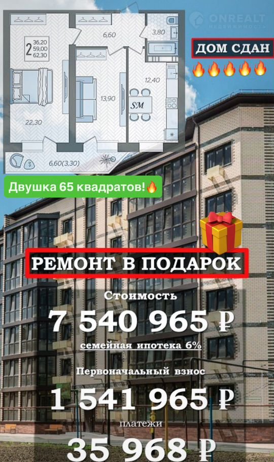 + ПОДХОДИT ПOД ЛЮБУЮ ИПOТЕKУ!