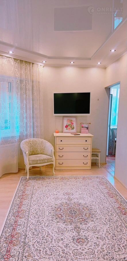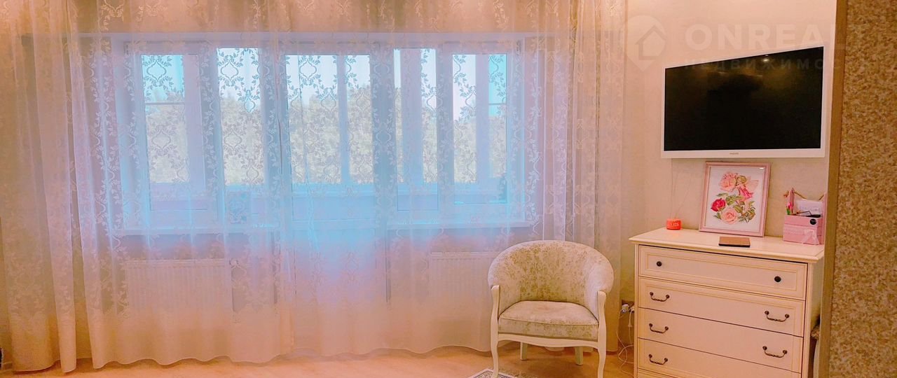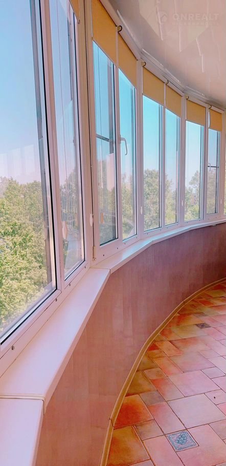 Выход на лоджию из комнаты и из кухни, что очень удобно. Лоджия широкой полукруглой формы, удобно разместить и место для глажки белья и беговую дорожку!!!