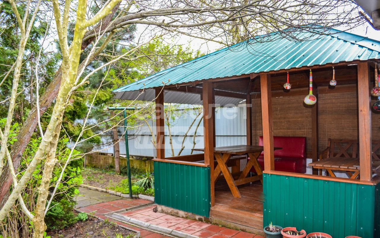 Уютный, озеленённый двор, уложенный плиткой. Во дворе гараж, беседка для отдыха.