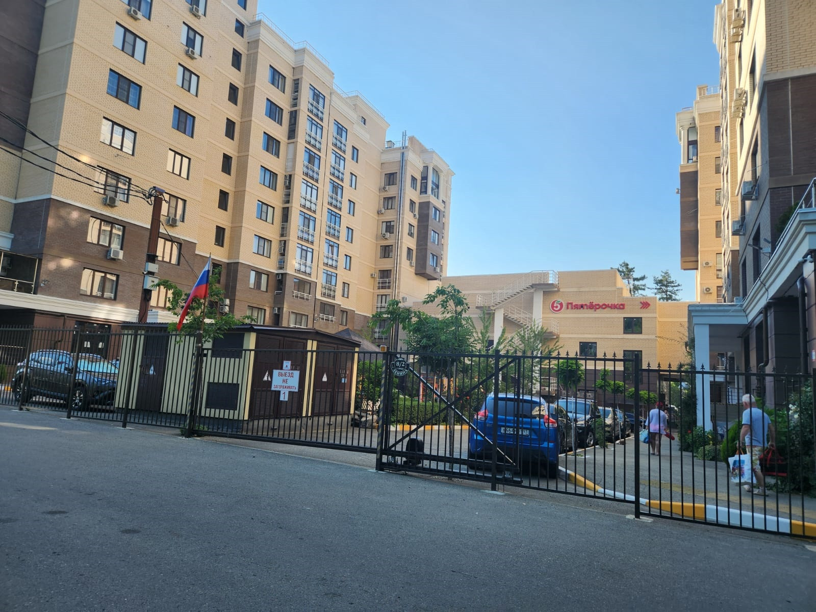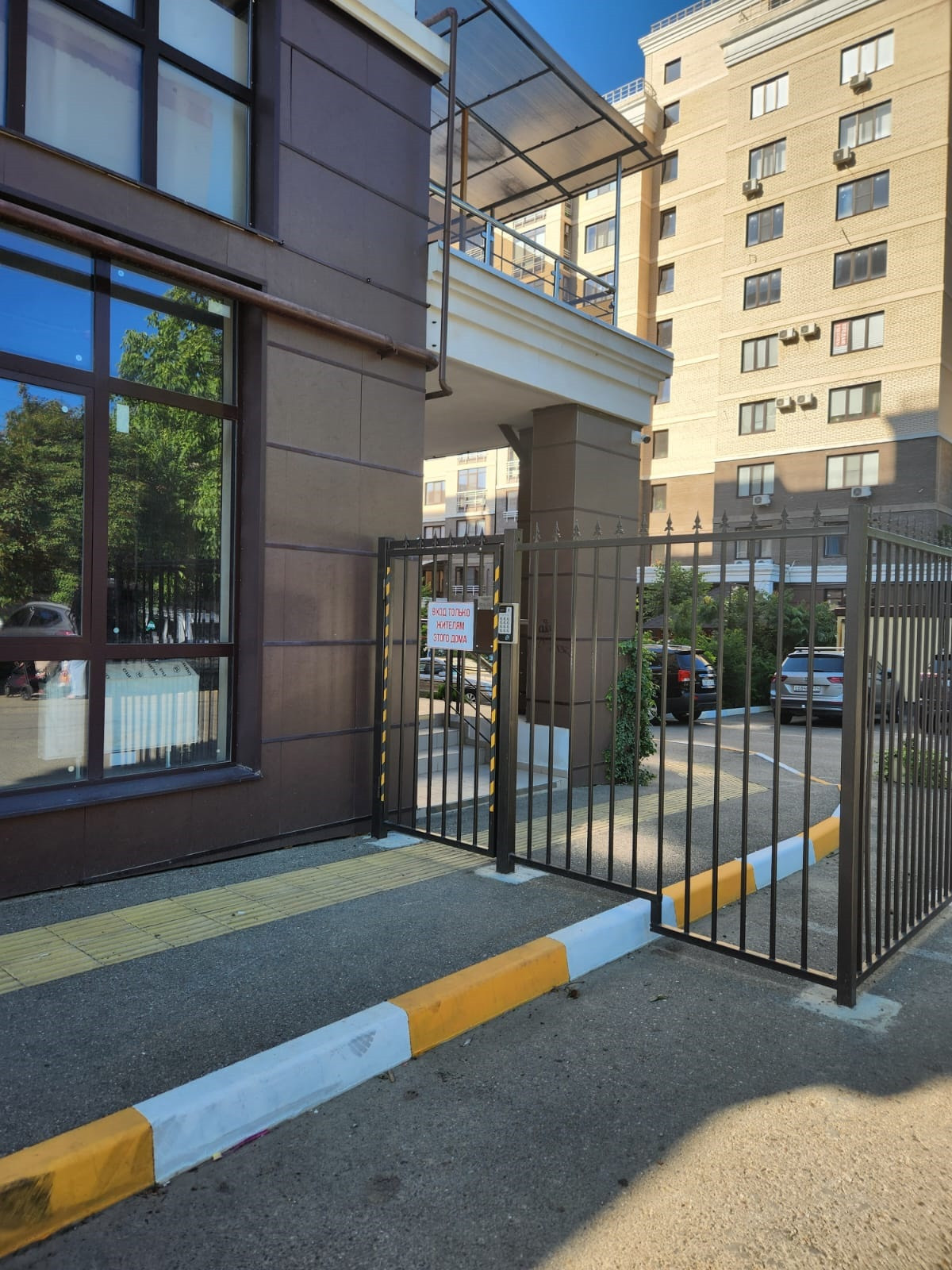 Закрытая территория, отдельный вход, есть возможность перенести забор и сделать территорию со свободным входом в коммерцию.
