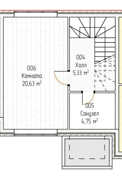 На втором этаже холл, комнат, санузел.