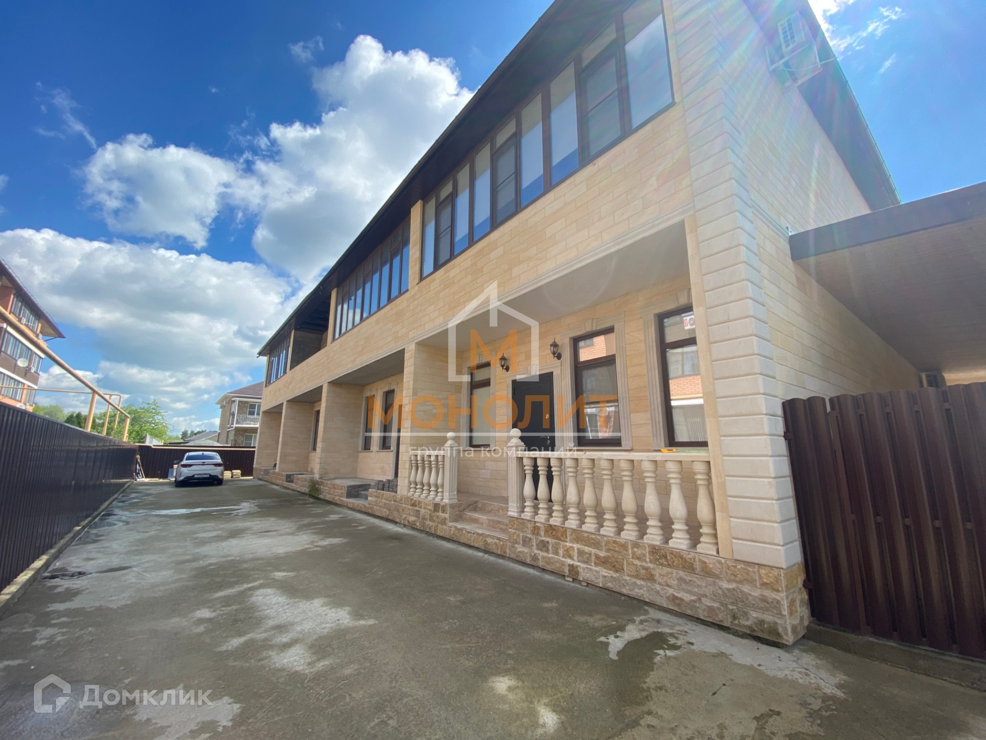 По периметру дома изготовлен капитальный забор, заезд для автомобиля забетонирован, есть место под зону барбекю.