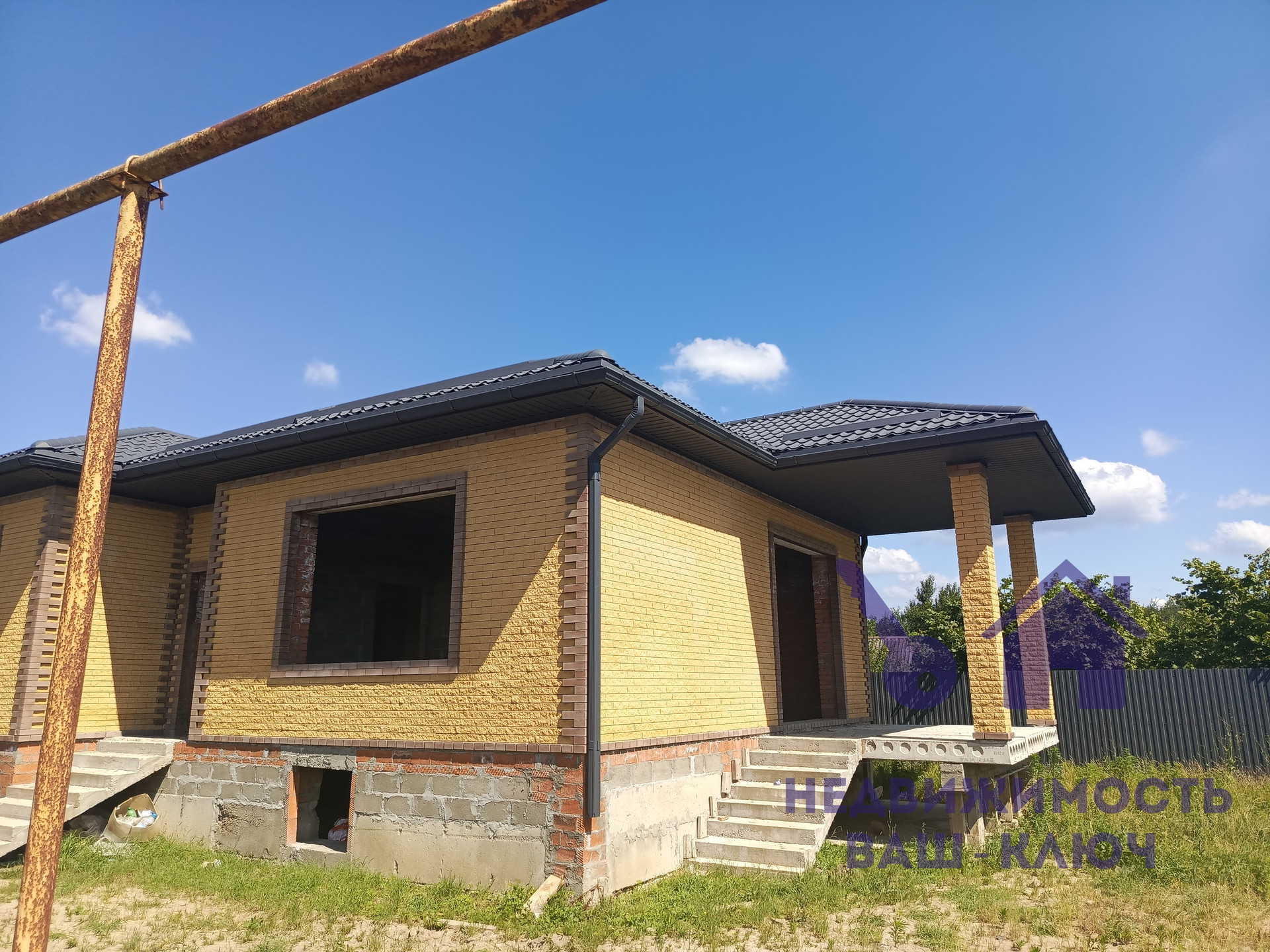 Фундамент - ленточный, высокий цоколь.