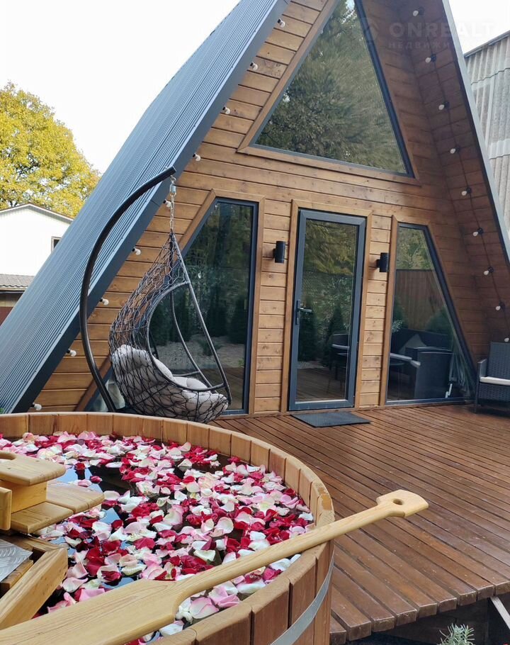 Приглашаем Вас отдохнуть в новом загородном доме "А-Фрейм у леса", в 40 км от Краснодара в районе г. Горячий ключ. Домик находится у самого леса. Дом на территории один!!!