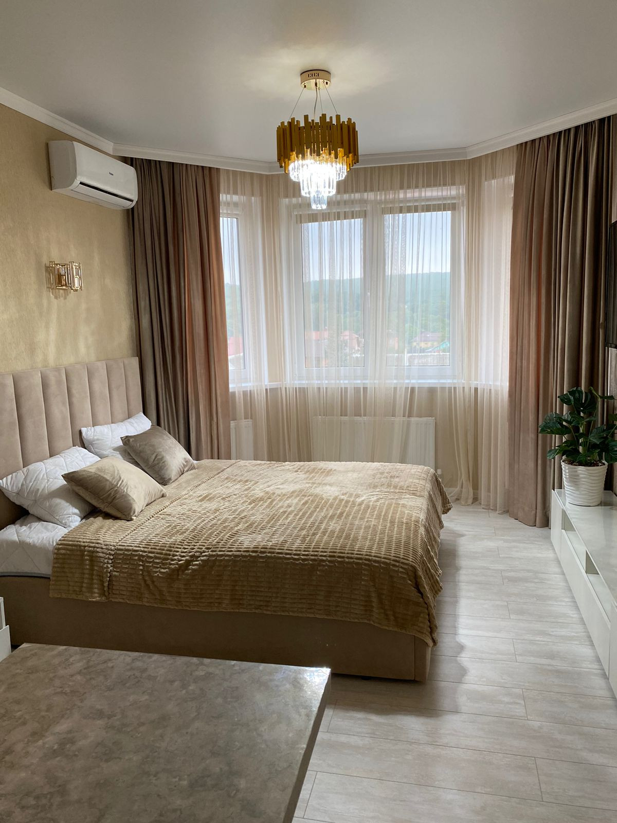 При входе в Курортный парк, рядом с санаториями сдается новая квартира-студия, полностью укомплектована необходимой мебелью, бытовой техникой,  посудой, постельное белье. Семейной паре или одному человеку - платежеспособным, без в/п, без детей и животных.
