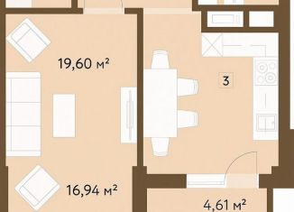 Продается однокомнатная квартира, 43 м2