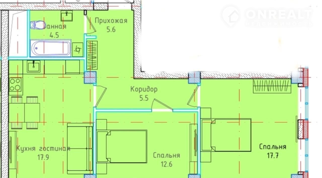 ✅ Просторная кухня-гостиная и 2 отдельные спальни