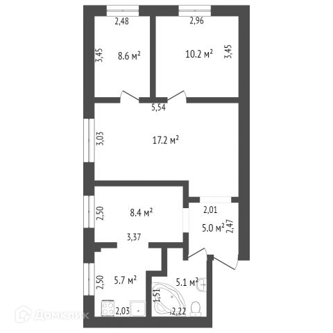 Общая площадь 60.5 м2