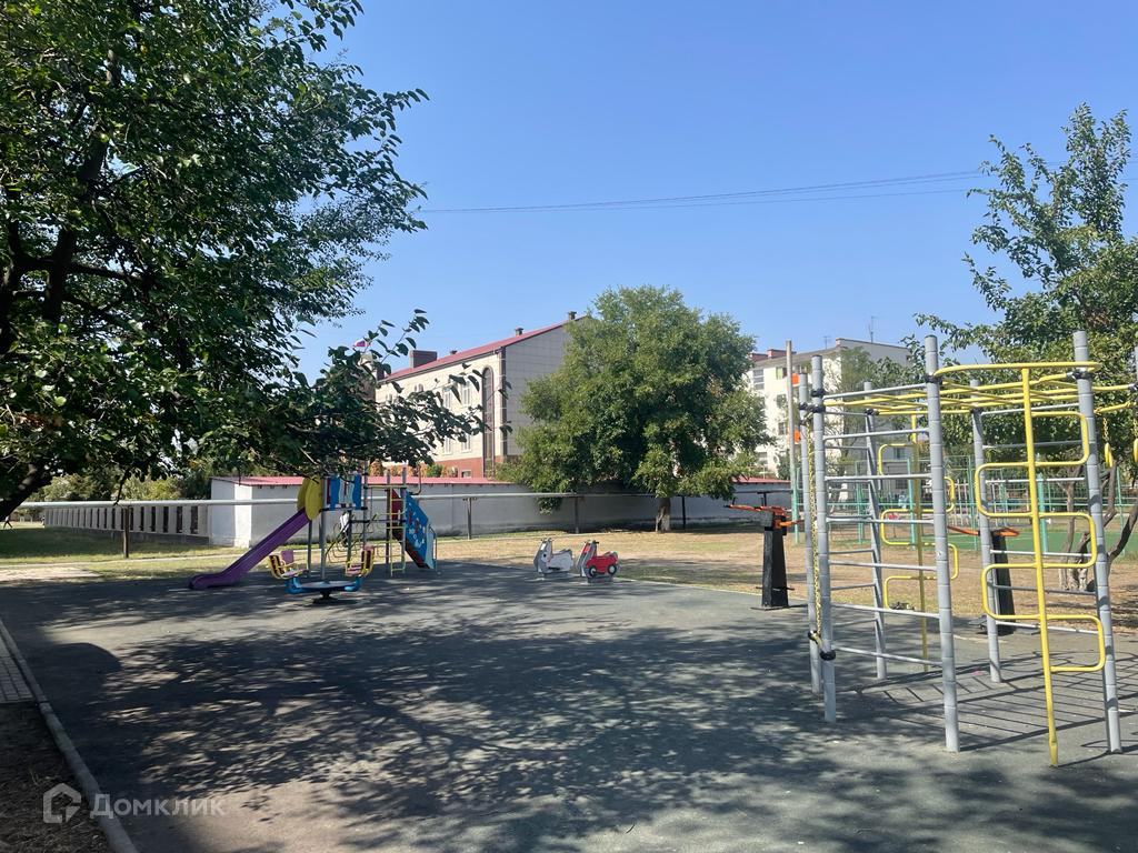 Во дворе есть детская площадка и наземная парковка.