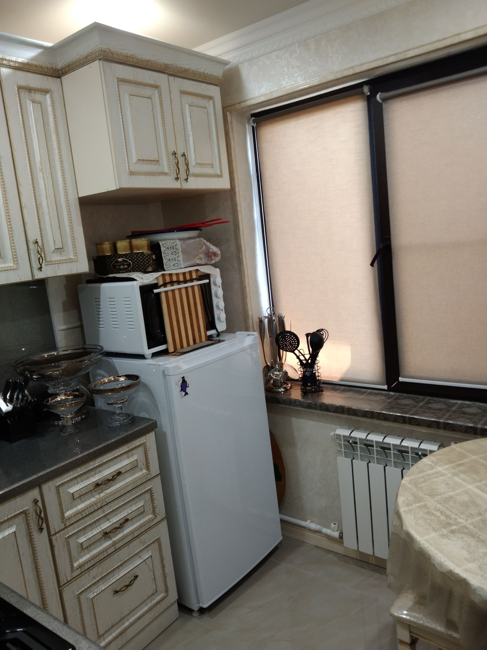на кухне, в прихожей и ванной сделан качественный ремонт, трубы и  сантехника новые, батареи  тоже заменены, балкон закрыт. В квартире остаётся: кухонная встроенная мебель с немецкой варочной панелью и вытяжкой, стол и 4 стула-табурета, кондиционер Gree и электрический  водонагреватель Ariston. Подъезд очень чистый, соседи замечательные.