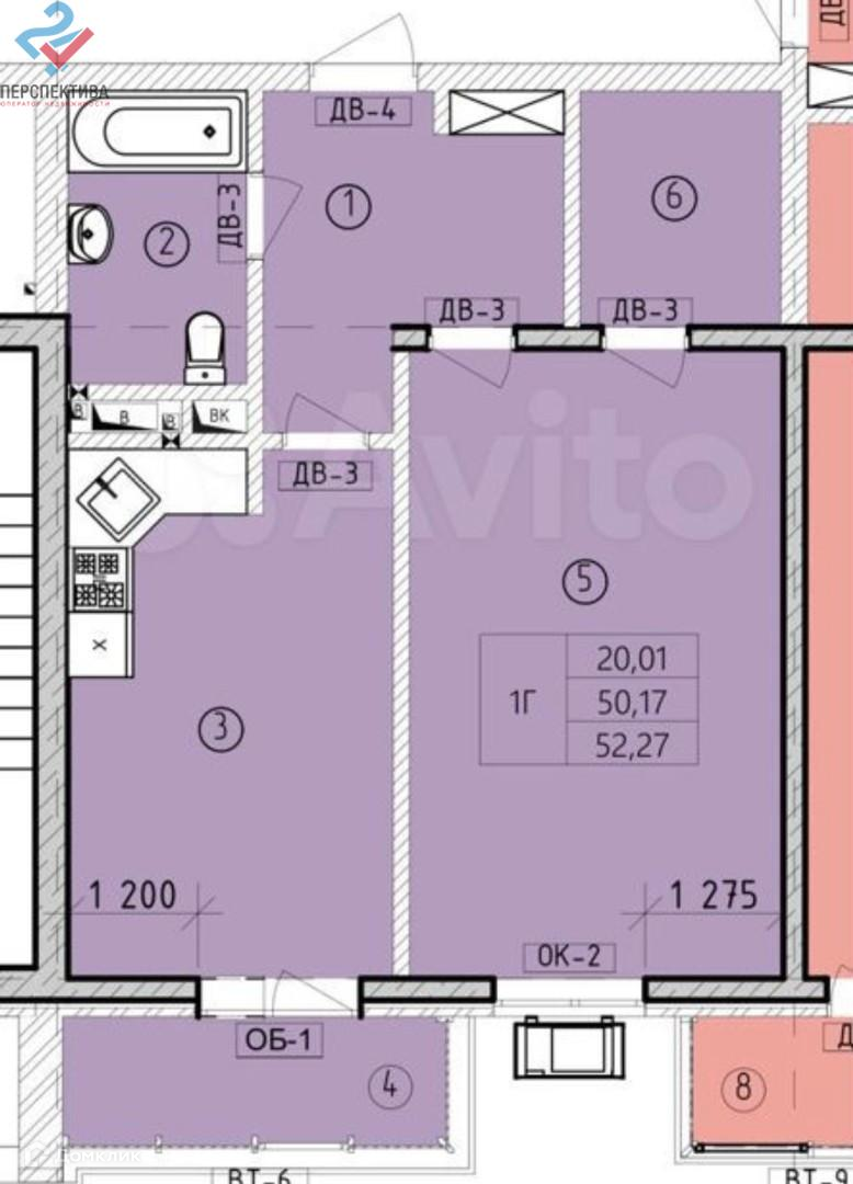 Общая площадь 52 м2