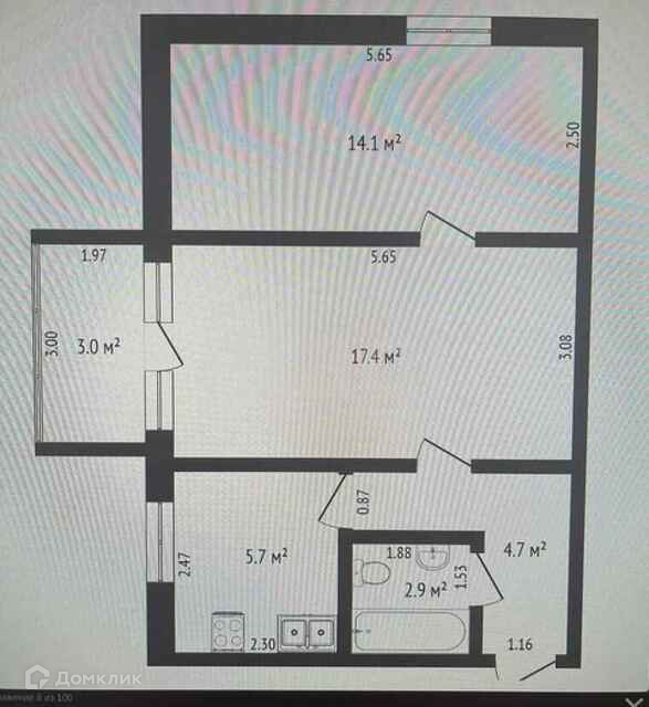 Общая площадь 38.1 м2
