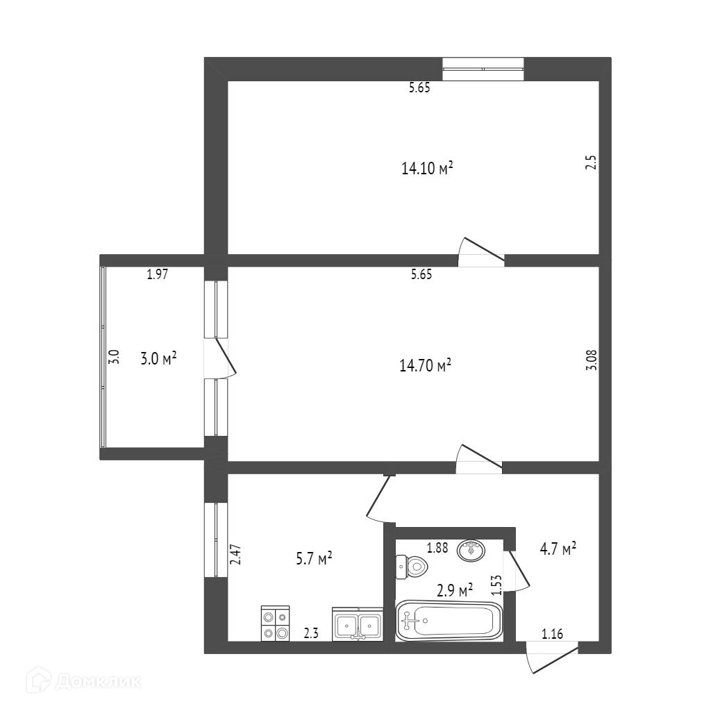 Балкон, лоджия 1 балкон