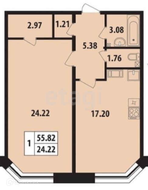 Общая площадь 55.3 м2