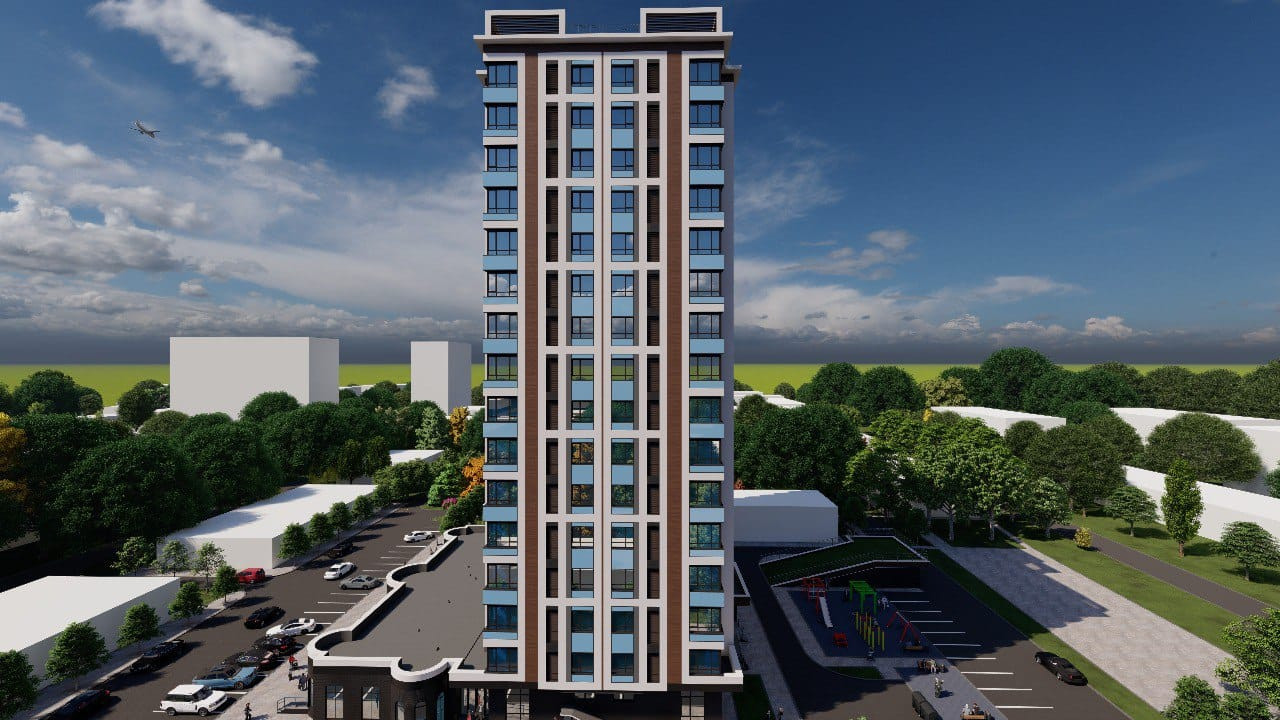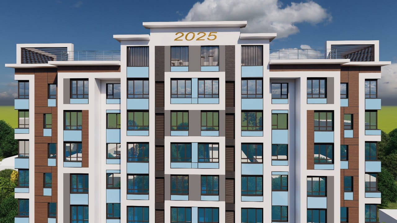 Фасады монолитного здание выполняется в современном лаконичном стиле, из алюминиевых композитных панелей, с применением современных материалов и вписывается в застройку г. Грозного.