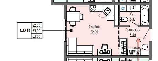 Общая площадь 33 м2
