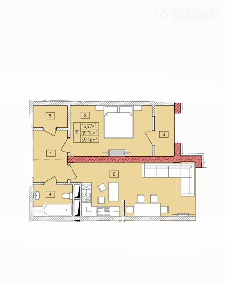 Общая площадь 60 м2