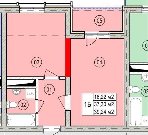 Общая площадь 39.2 м2