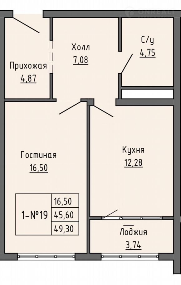 Общая площадь 49.3 м2