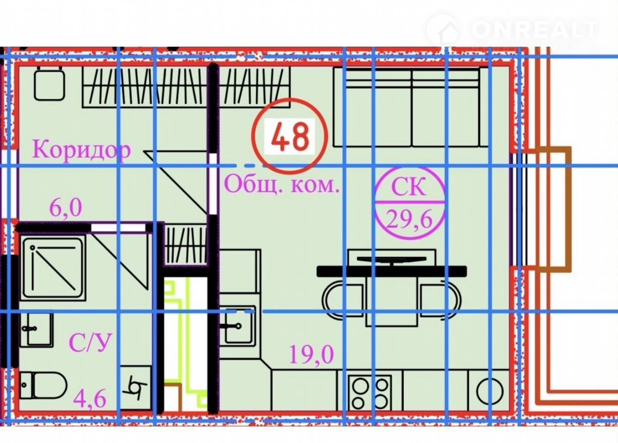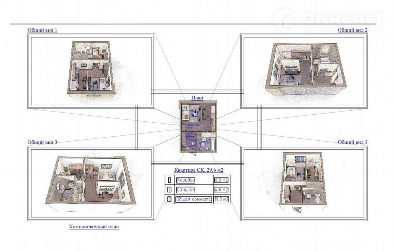 Общая площадь 29.6 м2