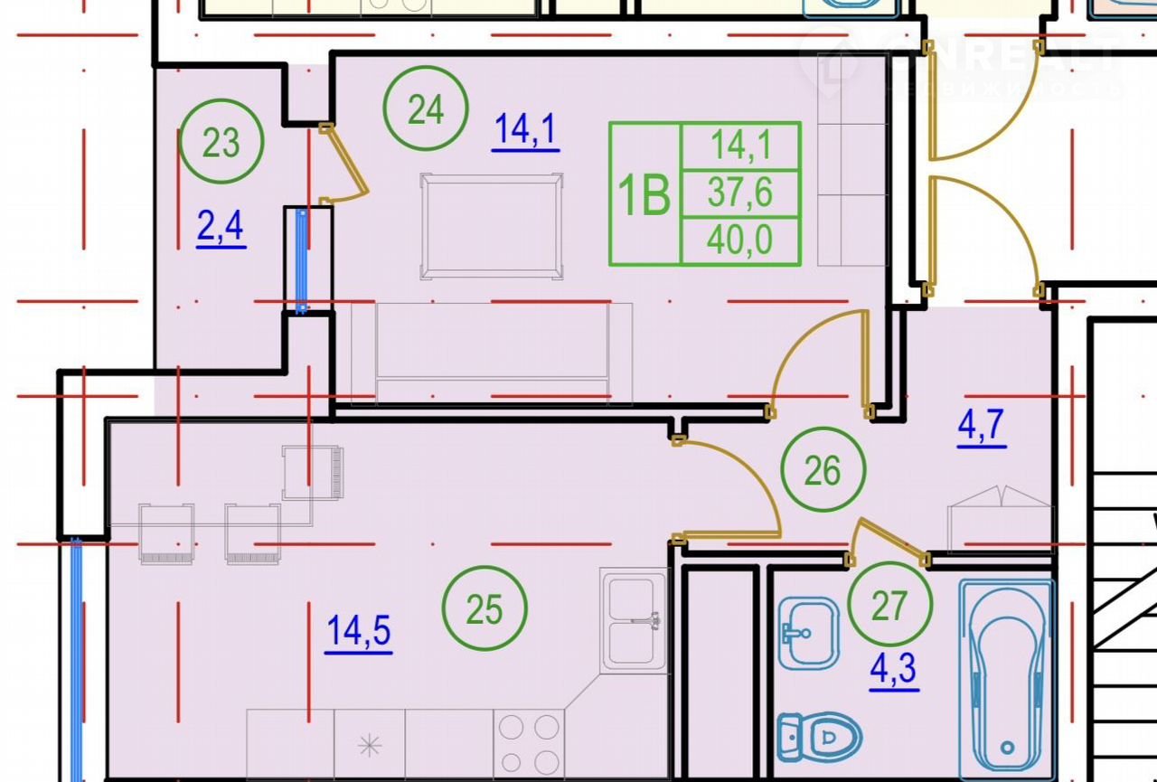 Общая площадь 40 м2