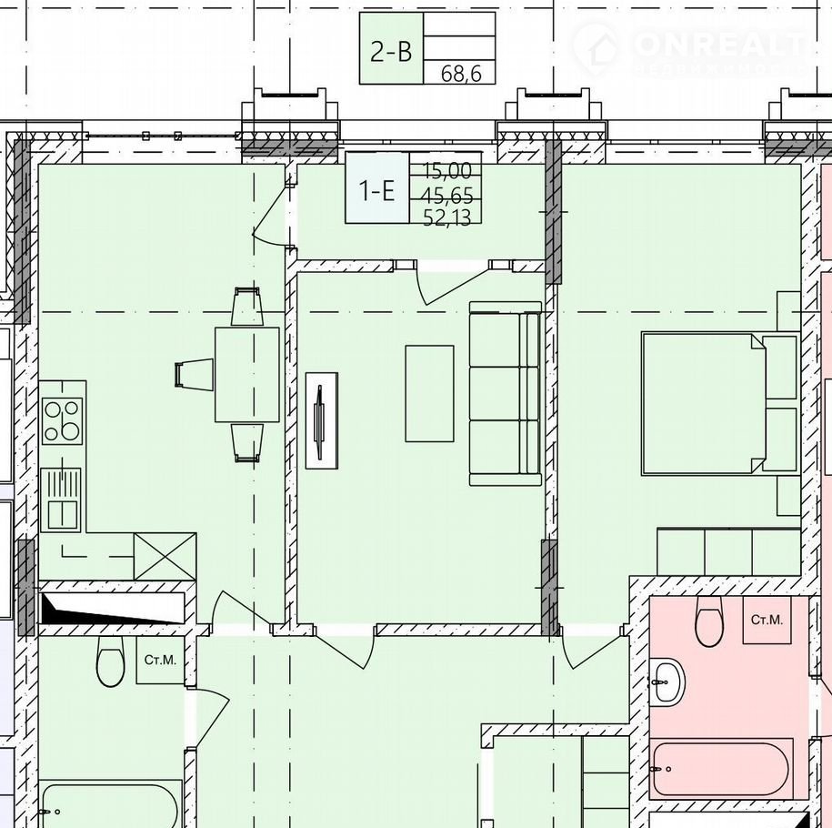 Общая площадь 68.6 м2