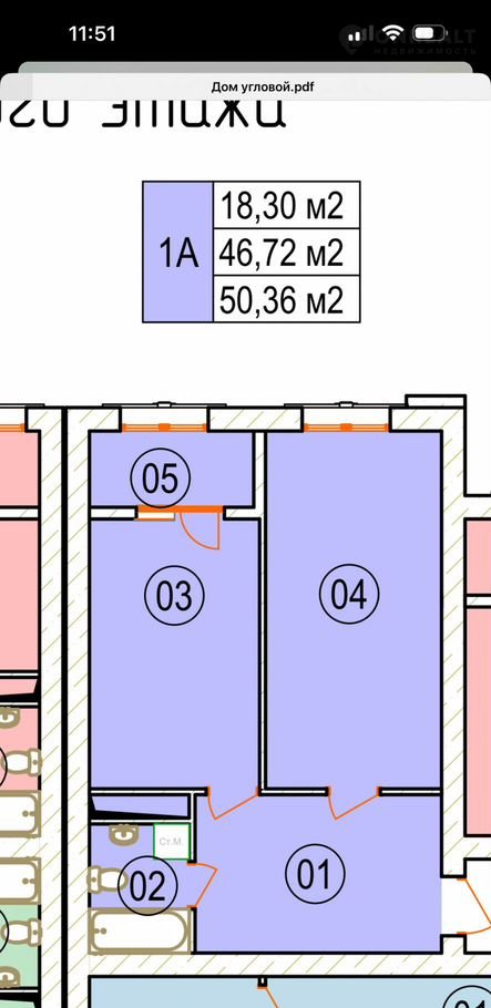 Общая площадь 50.4 м2