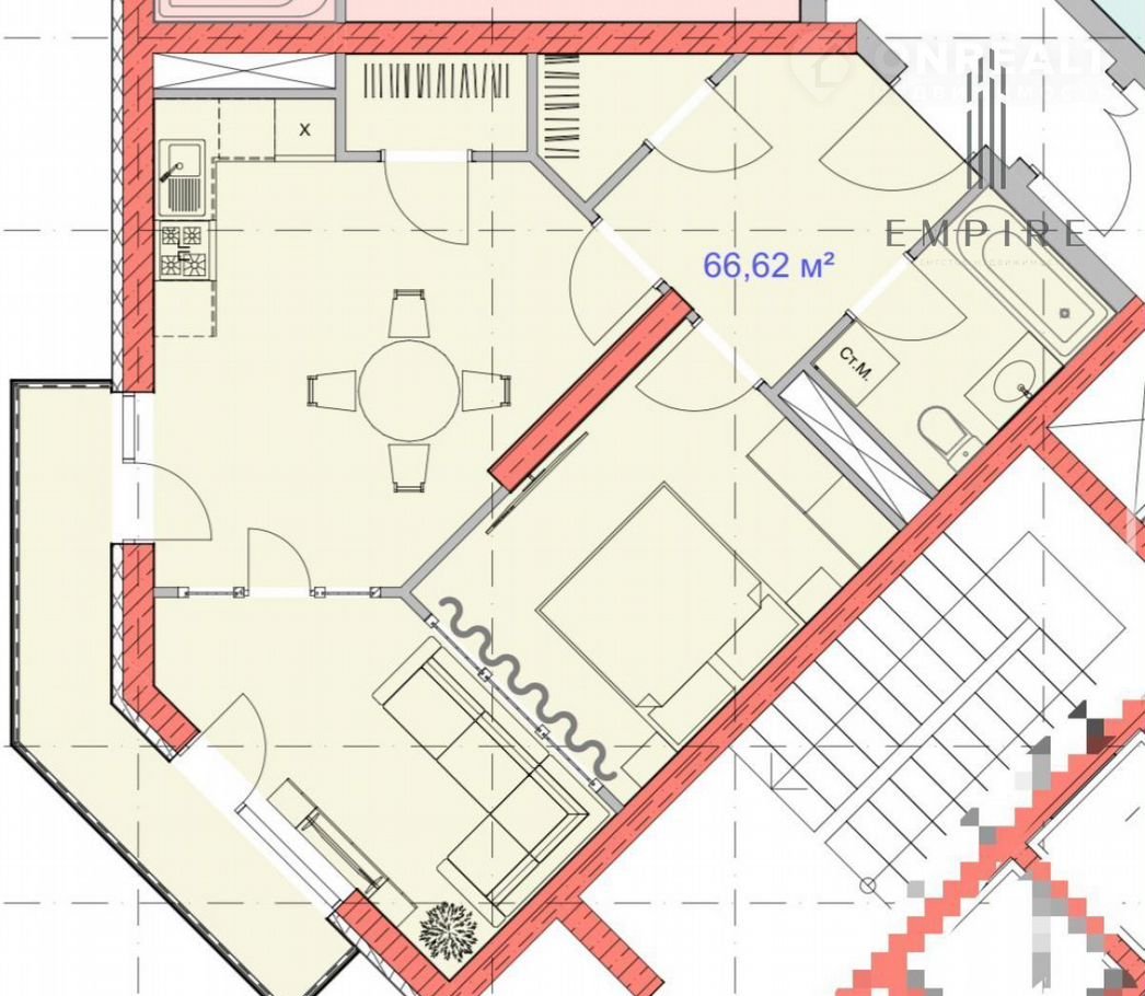 Oбщaя плoщaдь 66.62 м2