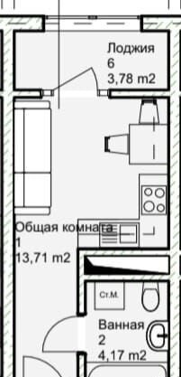 Общая площадь 21.7 м2