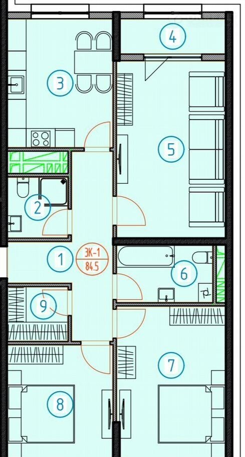 Общая площадь 84 м2
