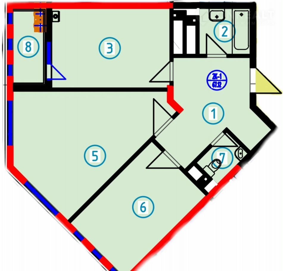 Общая площадь 67.1 м2