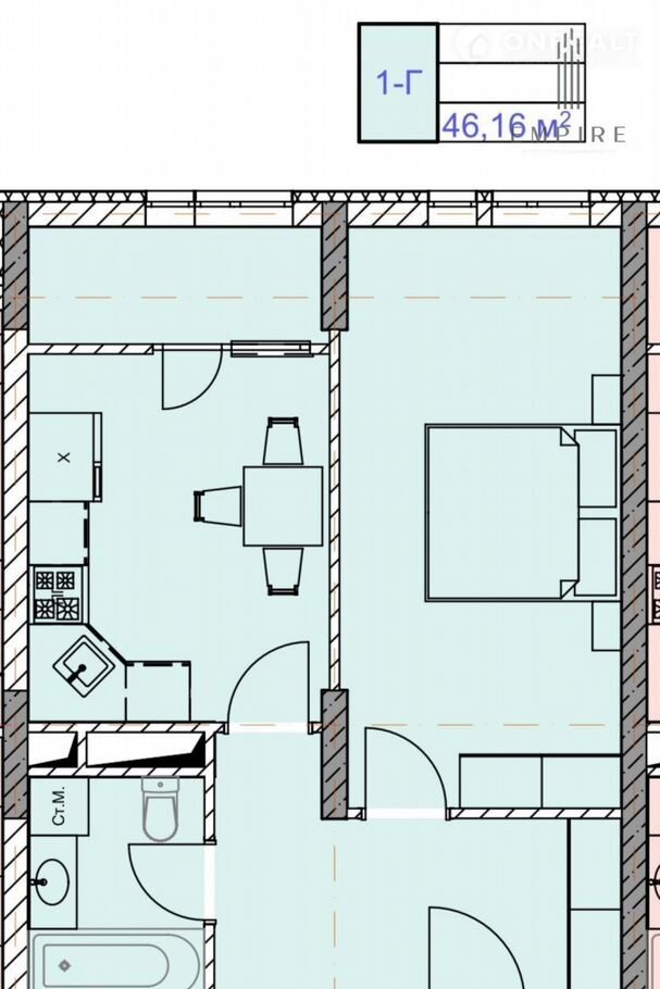 Общая площадь 46.2 м2