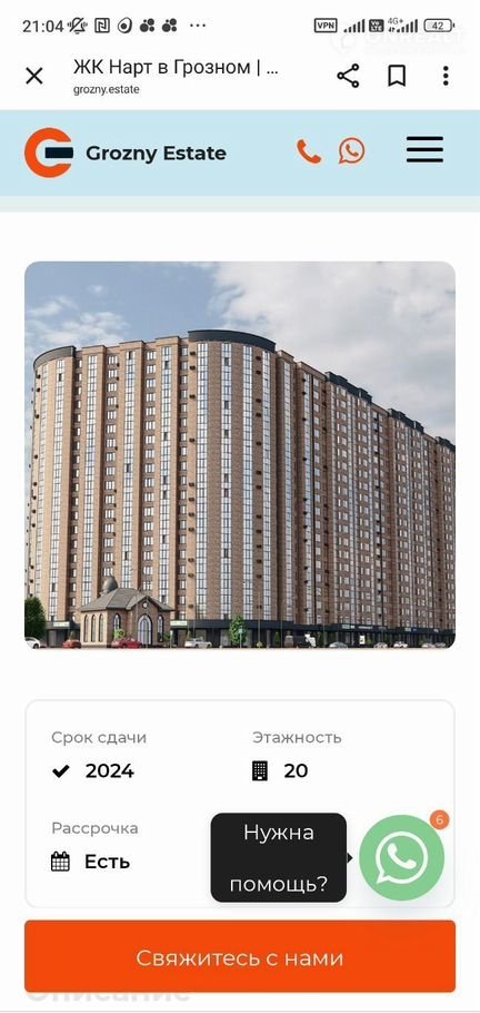 1-комнатная квартира, 48.3 м2, этаж 6 / 20, на продажу в Грозном, улица Сайханова, 107