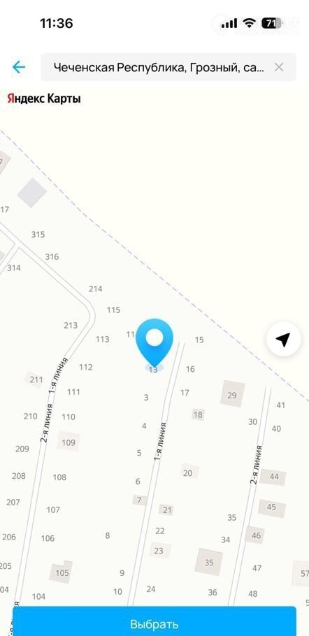Участок в СНТ, 4.9 сот. на продажу в Грозном, 1-я линия, 13
