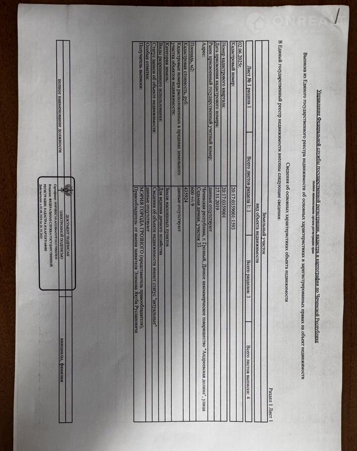 Участок под ИЖС, 6 сот. на продажу в Грозном