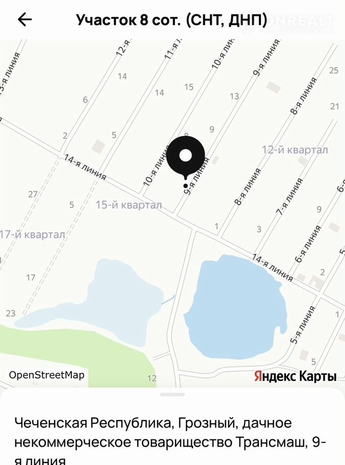Участок в СНТ, 8 сот. на продажу в Грозном, 9-я линия