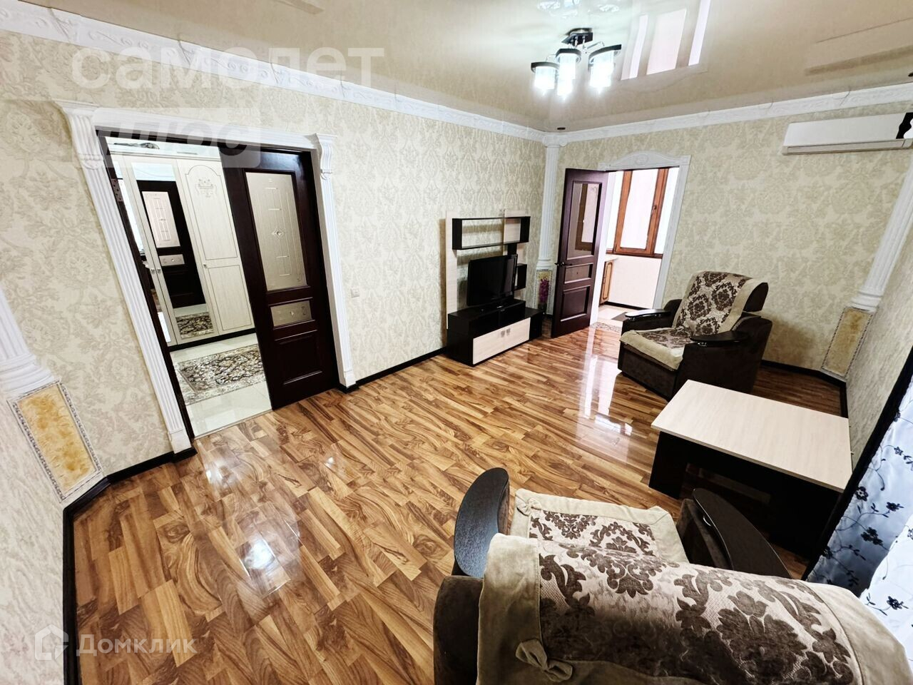 В квартире сделан хороший ремонт, качественные двери, зал, кухня - столовая , кухня на лоджии, зал, отдельно маленький гладильный угол , хорошая прихожая.