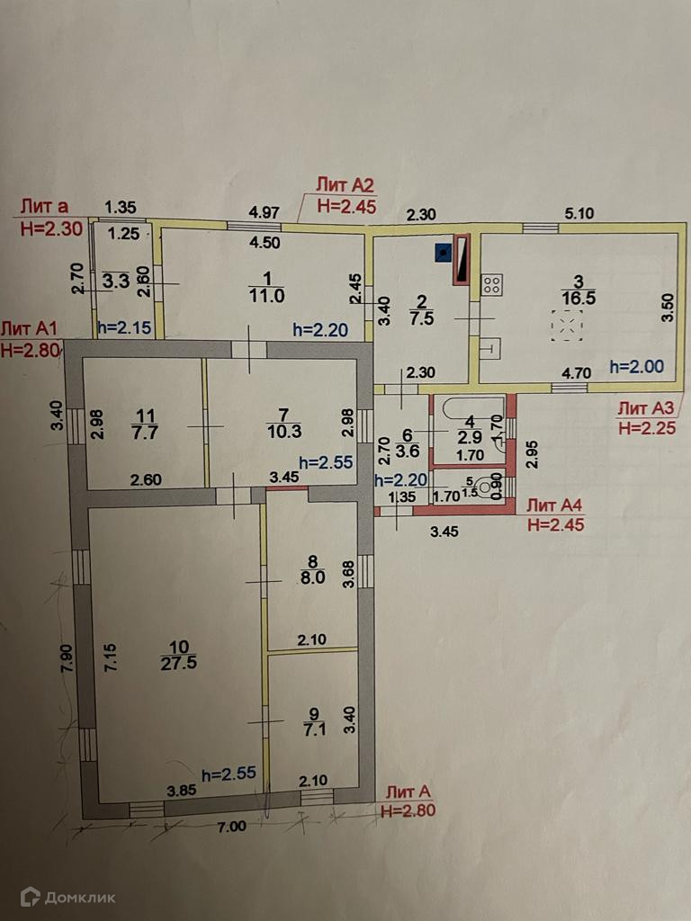 В доме три спальни, большой зал (27,5), большая кухня (16,5), комната под гардероб, ванная, туалет.