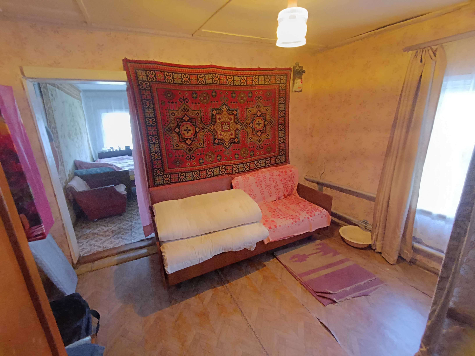В доме зал, кухня, две спальни. Газ, вода, свет, канализация септик.