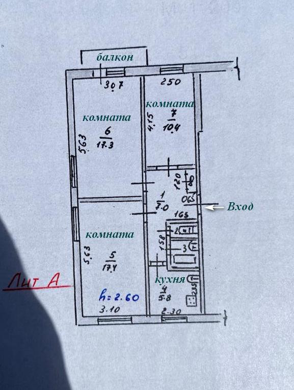 Комната -17,4 м2 Комната -17,3 м2 Комната - 10,4 м2
