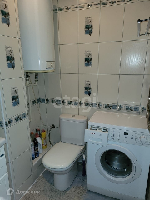 В санузле - стиральная машина, туалетный столик, бойлер.